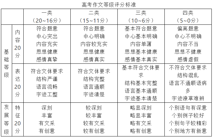 三类卷:从材料出发,允许内容游离;与材料内涵有一定距离,属于基本符合题意。特征按实际给分,不能跨类给分。比如,内容上判为三类卷,其他两项只能是二、三、四类,不能判为一类。也就是说,一旦是基本符合题意,最多是40分,这就是立意定等级;最少是6分,这就是表达定高低。